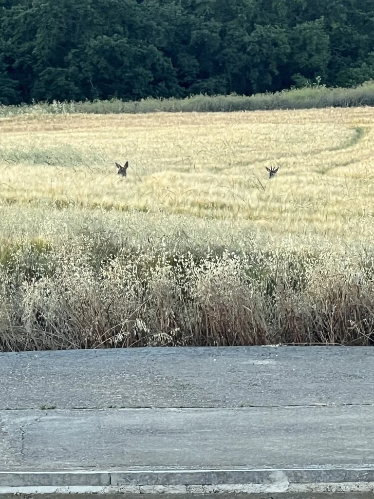 The day got off to a whimsical start (see the heads of two deer popping up in the wheat field?)